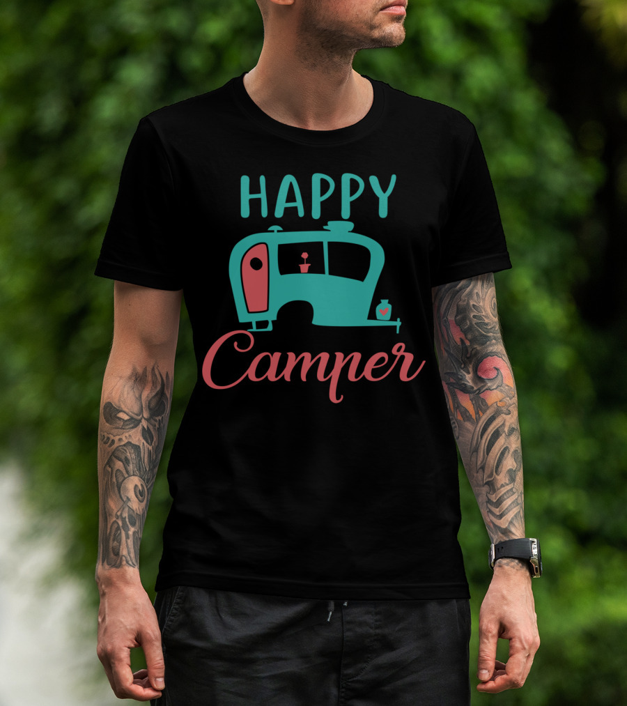 Happy Camper Retro Teal And Coral Vintage Camper T-Shirt