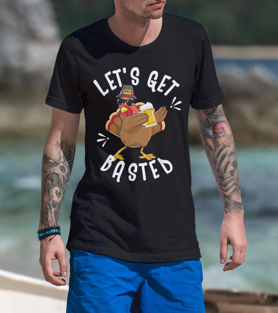 Let's Get Basted Funny Beer Turkey Thanksgiving Holiday T-Shirt