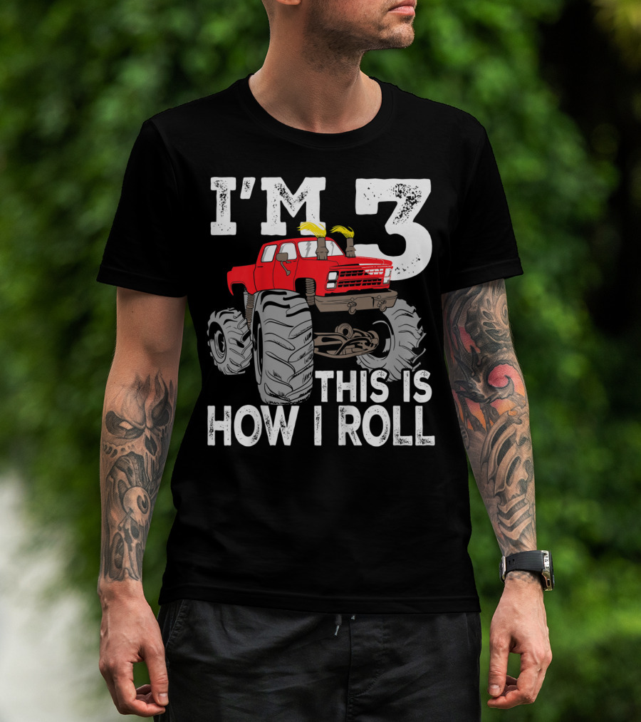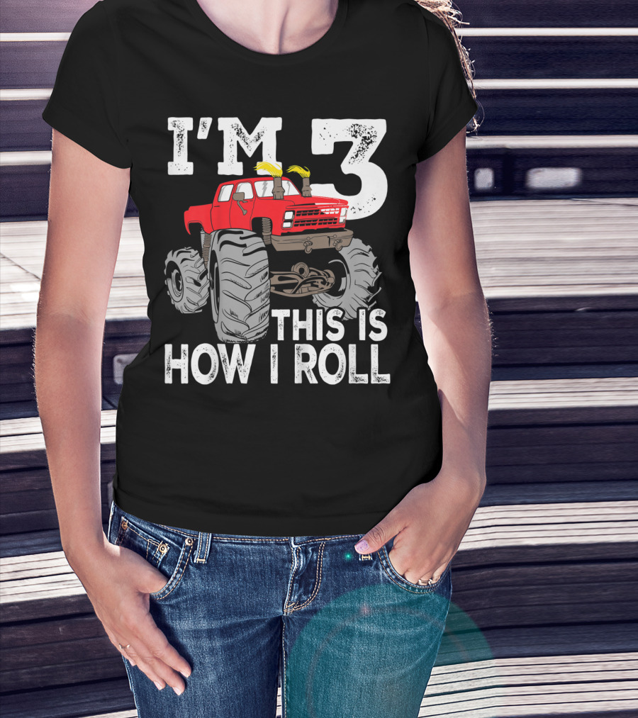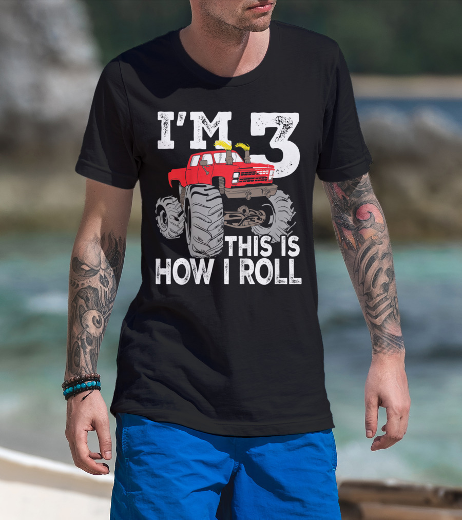 I'm 3 This Is How I Roll Kids Monster Trucks 3rd Birthday Party Three T-Shirt