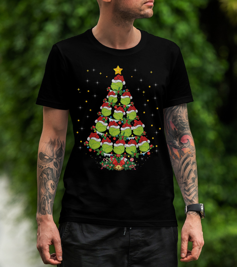 Lettuce Lover Xmas Tree With Santa Hat Christmas Star T-Shirt