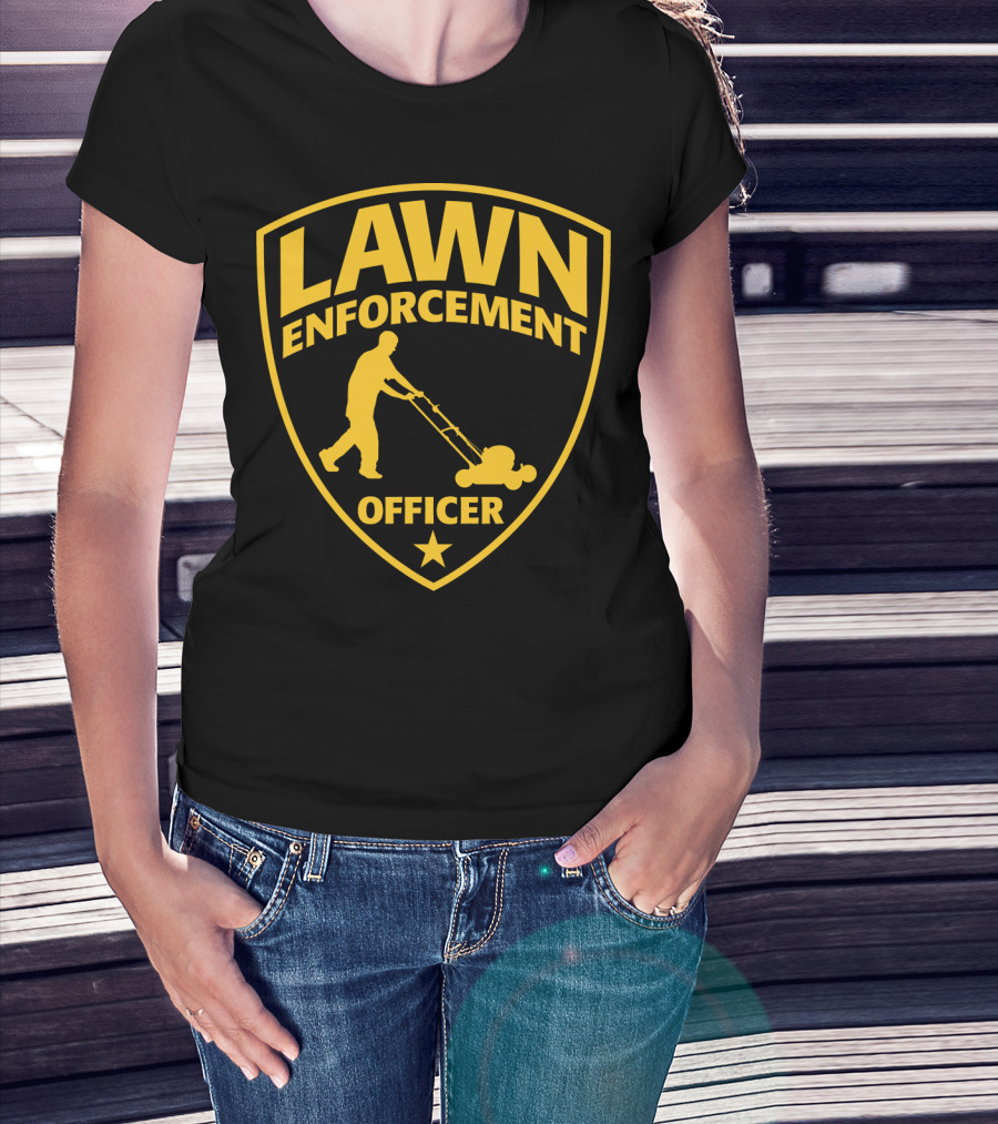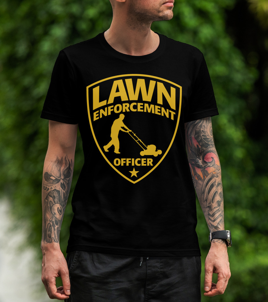Lawn Enforcement Officer Dad Father's Day Badge Mowing T-Shirt