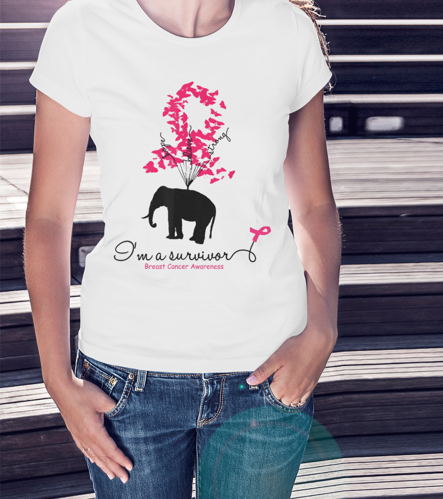 I'm A Survivor Breast Cancer Awareness Pink Ribbon Butterfly Elephant T-Shirt