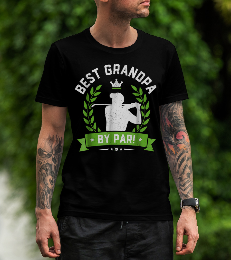 Best Grandpa By Par Funny Golf Crown Laurel Leaf Retro T-Shirt