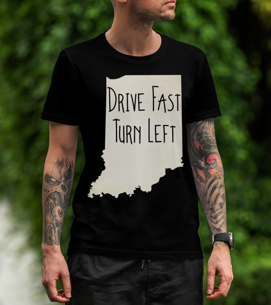 Indiana Drive Fast Turn Left Racing Outline T-Shirt