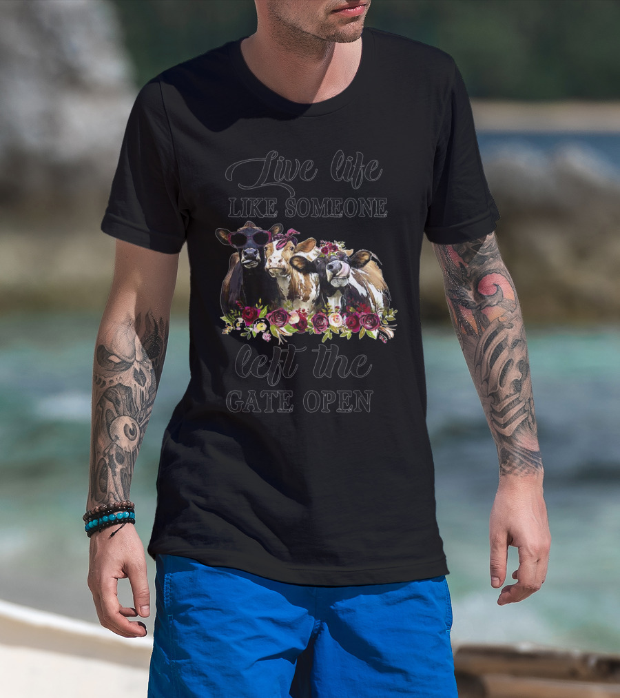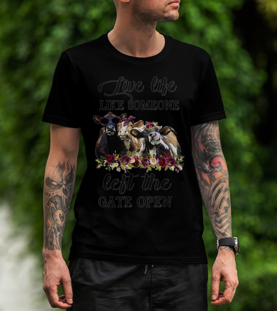 Live Life Like Someone Left The Gate Open Heifer Floral Cow Trio T-Shirt