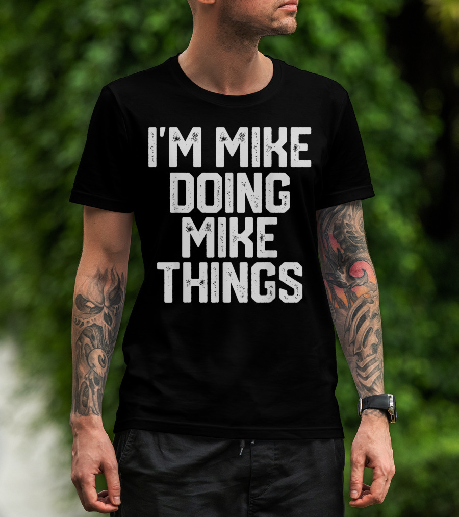 The I'm Mike Doing Mike Things Mens T-shirt is designed for everyday wear and a consistent fit. Fabric is pre-shrunk ring-spun cotton with durable stitching. See the size chart below for exact measurements.