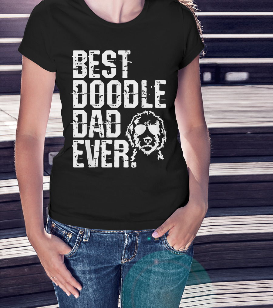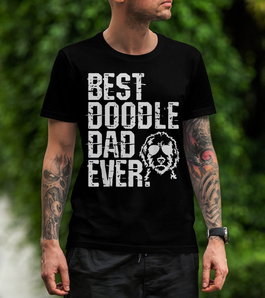 Mens Best Doodle Dad Ever With Golden Doodle Do Wearing Sunglasses T-Shirt