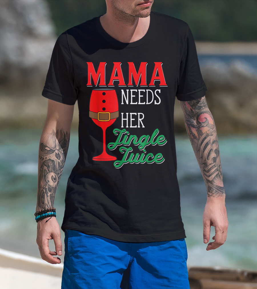 Mama Needs Her Jingle Juice Wine Glass Santa Suit T-Shirt