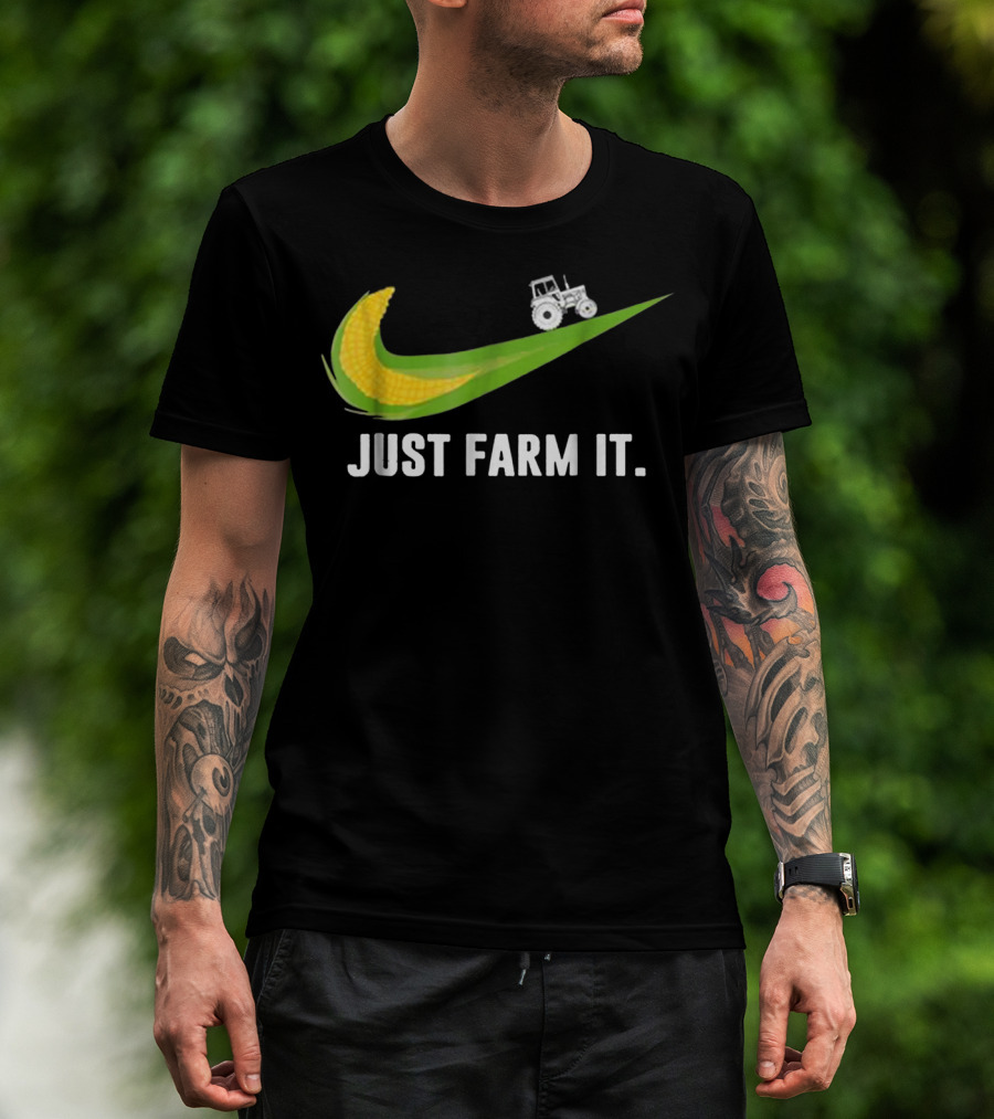 Just Farm It Maize Farmer Corn Tractor Swoosh T-Shirt