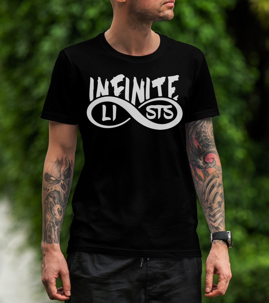 The INFINITE LISTS Logo with Infinity T-shirt is designed for everyday wear and a consistent fit. Fabric is pre-shrunk ring-spun cotton with durable stitching. See the size chart below for exact measurements.