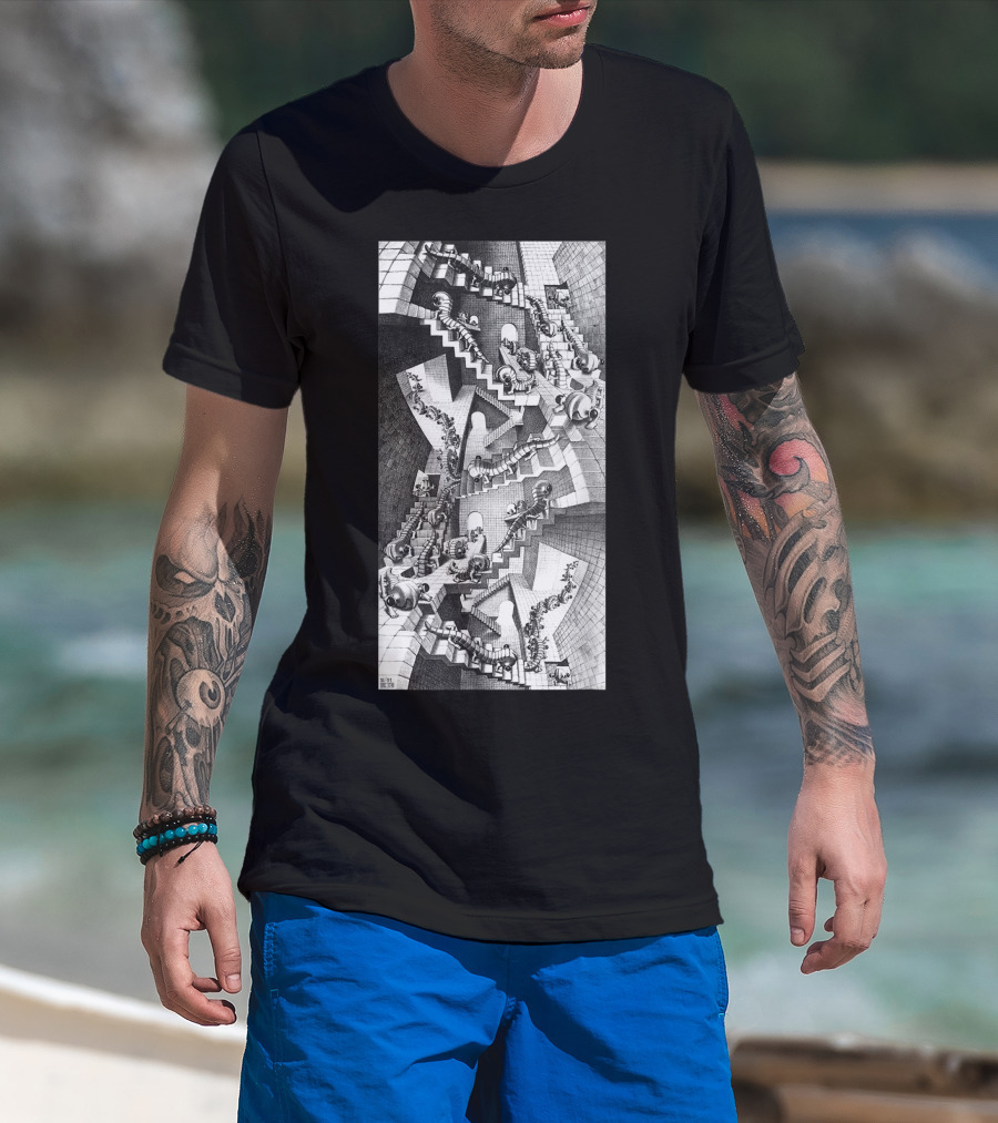 Escher Relativity Optical Illusion Staircase Maze In Three Colors T-Shirt