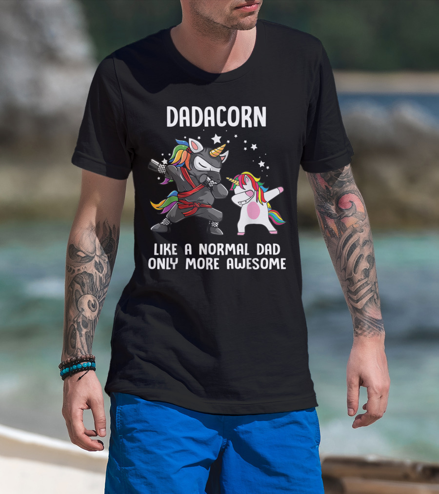 Dadacorn Like A Normal Dad Only More Awesome Ninja Rainbow Unicorn Stars T-Shirt