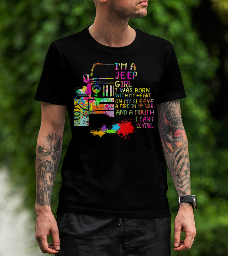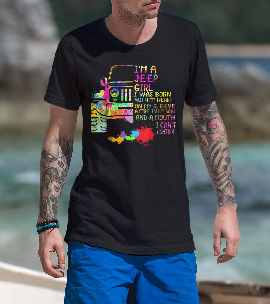 I'm A Jeep Girl Born With Heart On Sleeve Fire In Soul Mouth I Can't Control T-Shirt