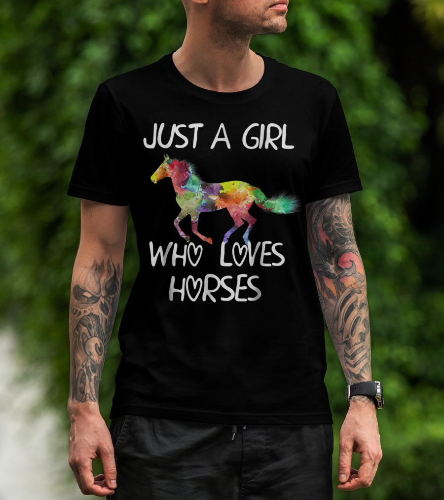 Just A Girl Who Loves Horses Colorful Watercolor Horse T-Shirt