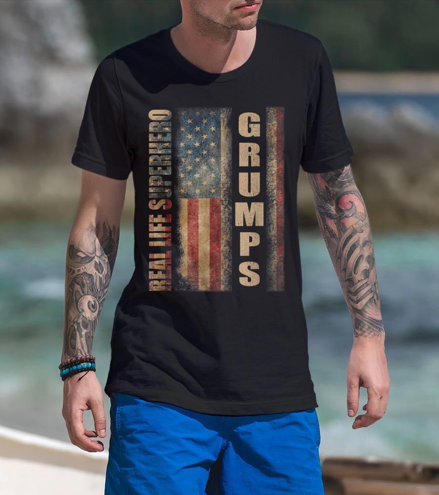 Real Life Superhero Grumps America Flag Mens T-Shirt