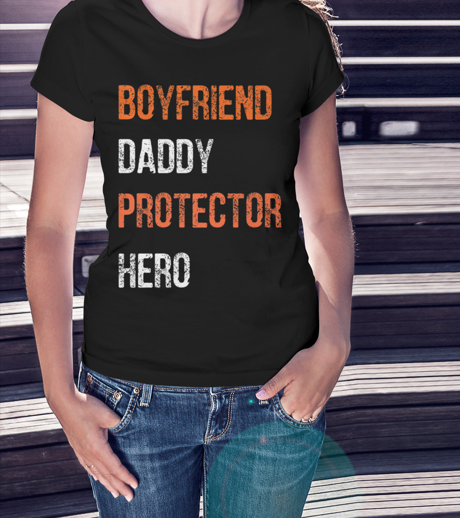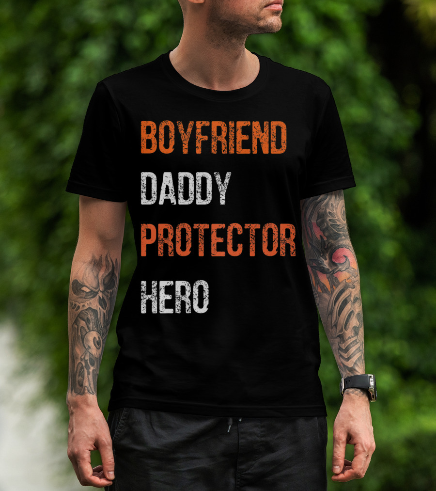 The Boyfriend Daddy Protector Hero T-shirt is designed for everyday wear and a consistent fit. Fabric is pre-shrunk ring-spun cotton with durable stitching. See the size chart below for exact measurements.