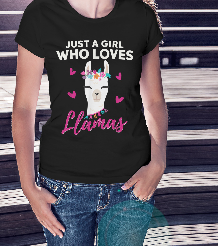Just A Girl Who Loves Llamas With Heart Love Motif T-Shirt