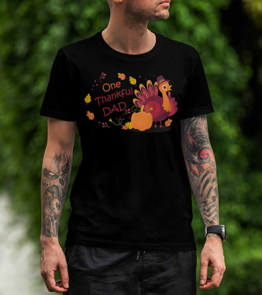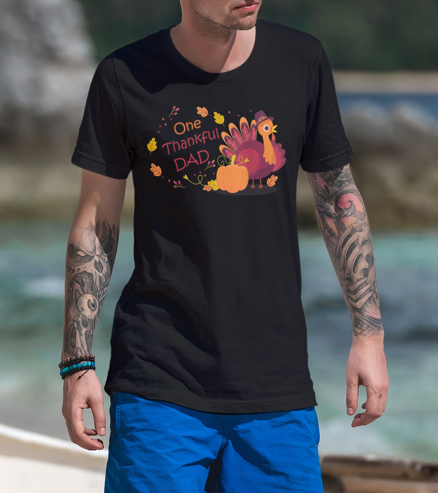 One Thankful Dad Turkey With Pumpkin And Autumn Leaves T-Shirt