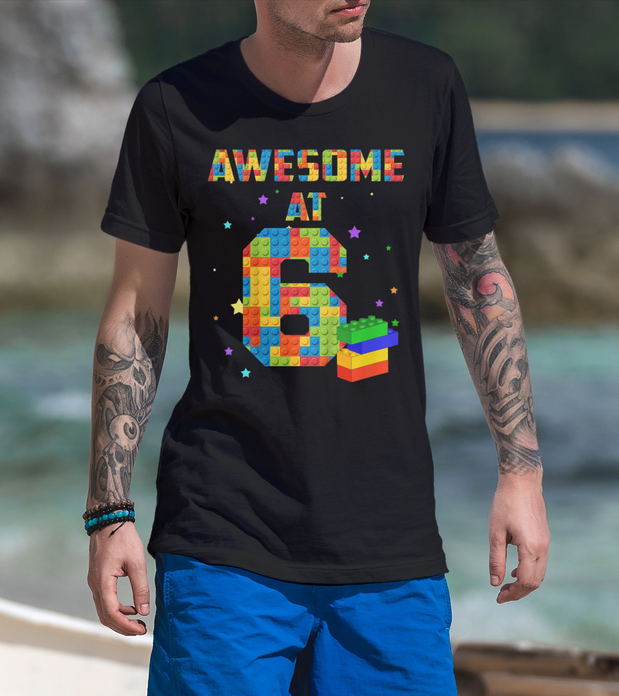 Awesome At 6 Building Blocks Birthday T-Shirt