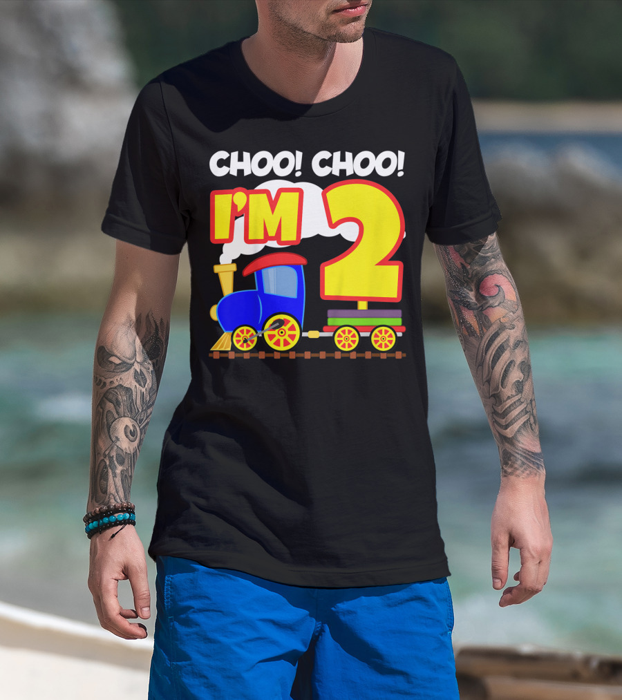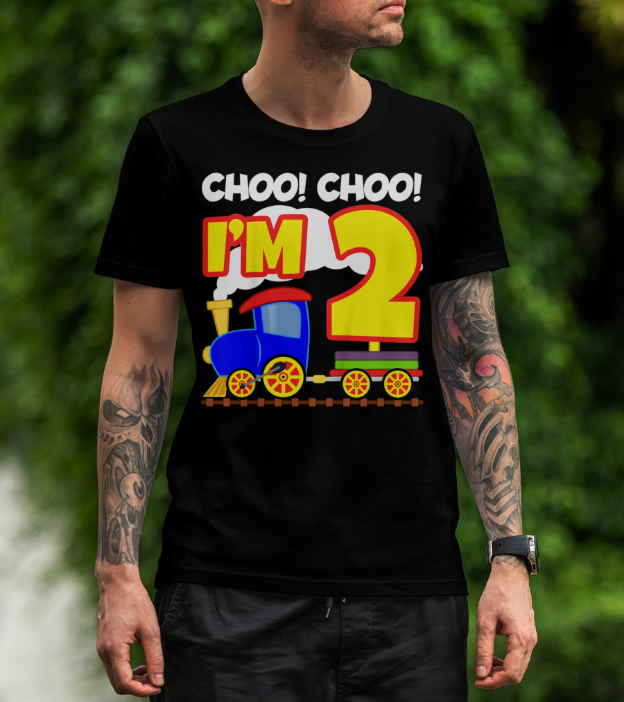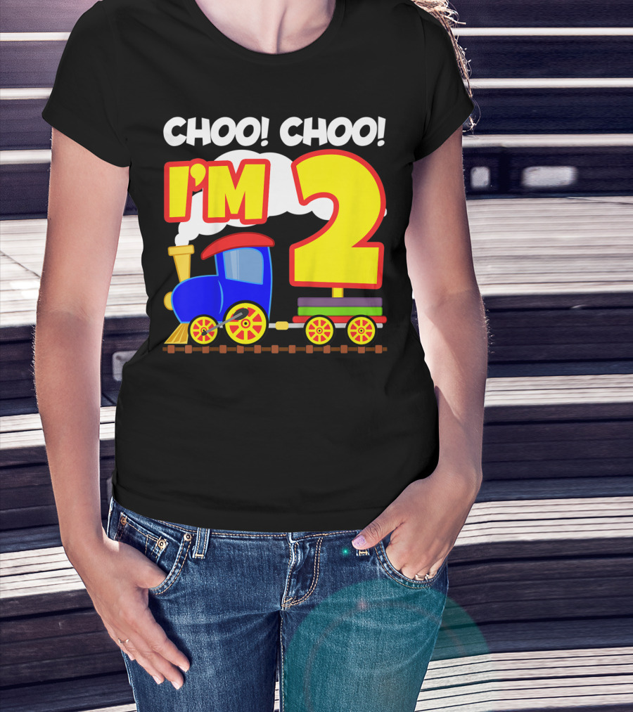 Choo Choo I'm 2 Year Old Train Birthday Toddler Fun T-Shirt