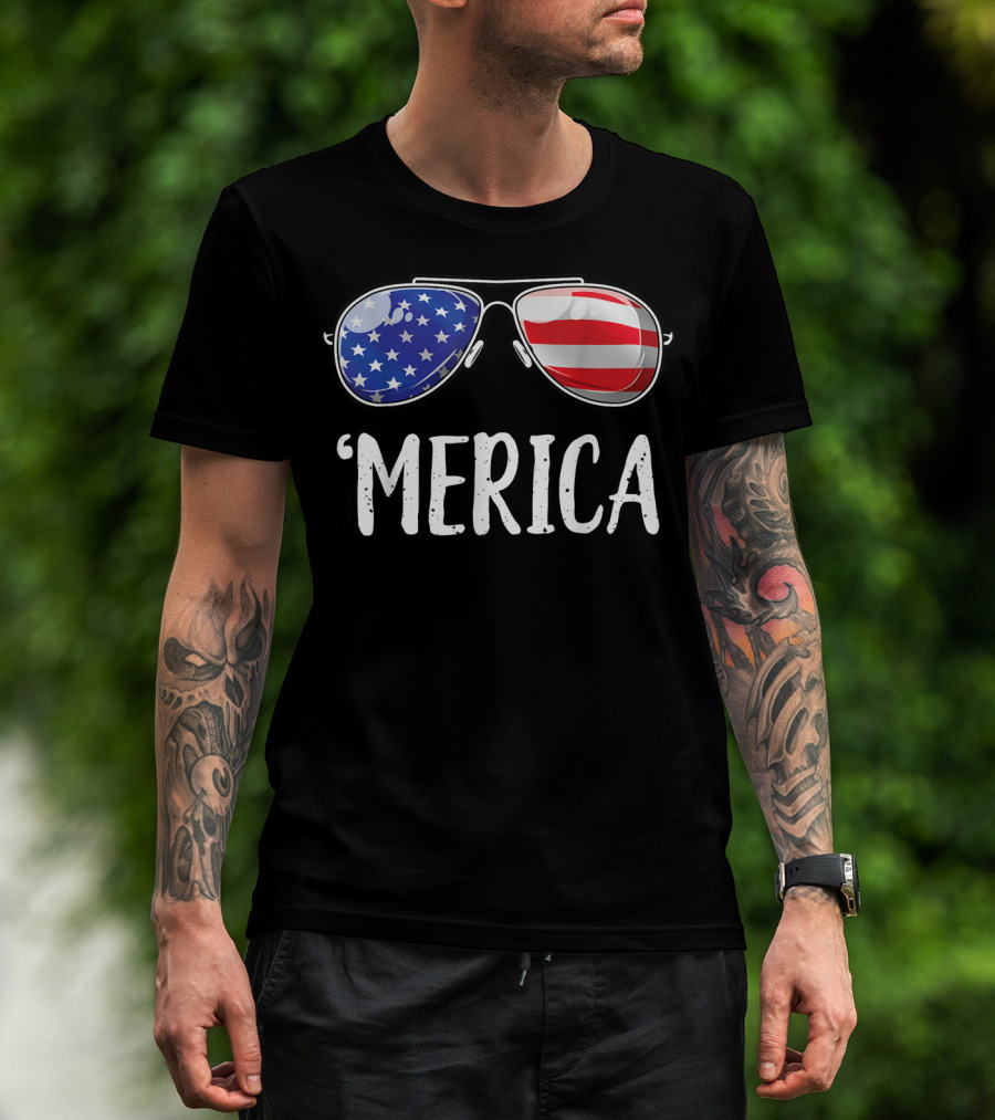 'Merica Sunglasses American Flag Fourth Of July T-Shirt