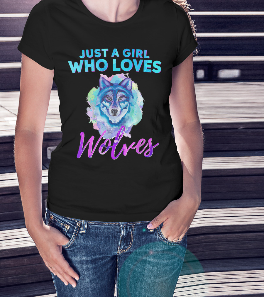 Just A Girl Who Loves Wolves Watercolor Wolf Colorful T-Shirt