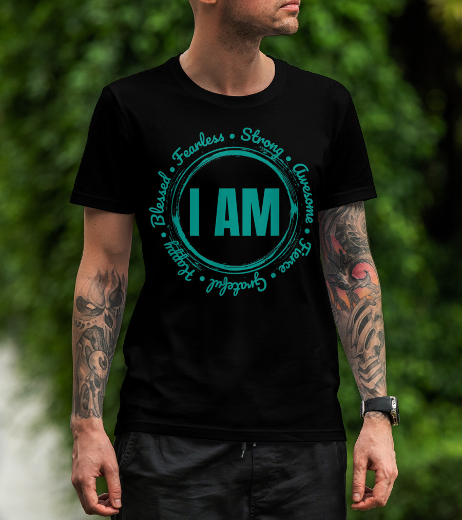 The I Am Blessed Fearless Strong Awesome Brave Thankful Grateful Happy T-shirt is designed for everyday wear and a consistent fit. Fabric is pre-shrunk ring-spun cotton with durable stitching. See the size chart below for exact measurements.