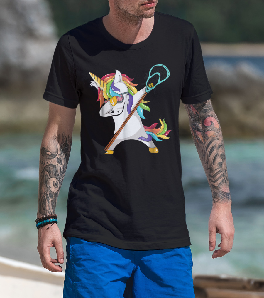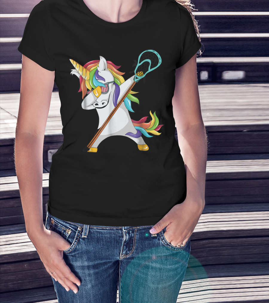 Lacrosse Dab Dabbing Unicorn With Colorful Mane T-Shirt