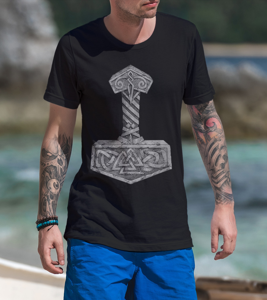 Mjolnir Thor's Hammer With Valknut Symbol Norse Mythology Viking T-Shirt