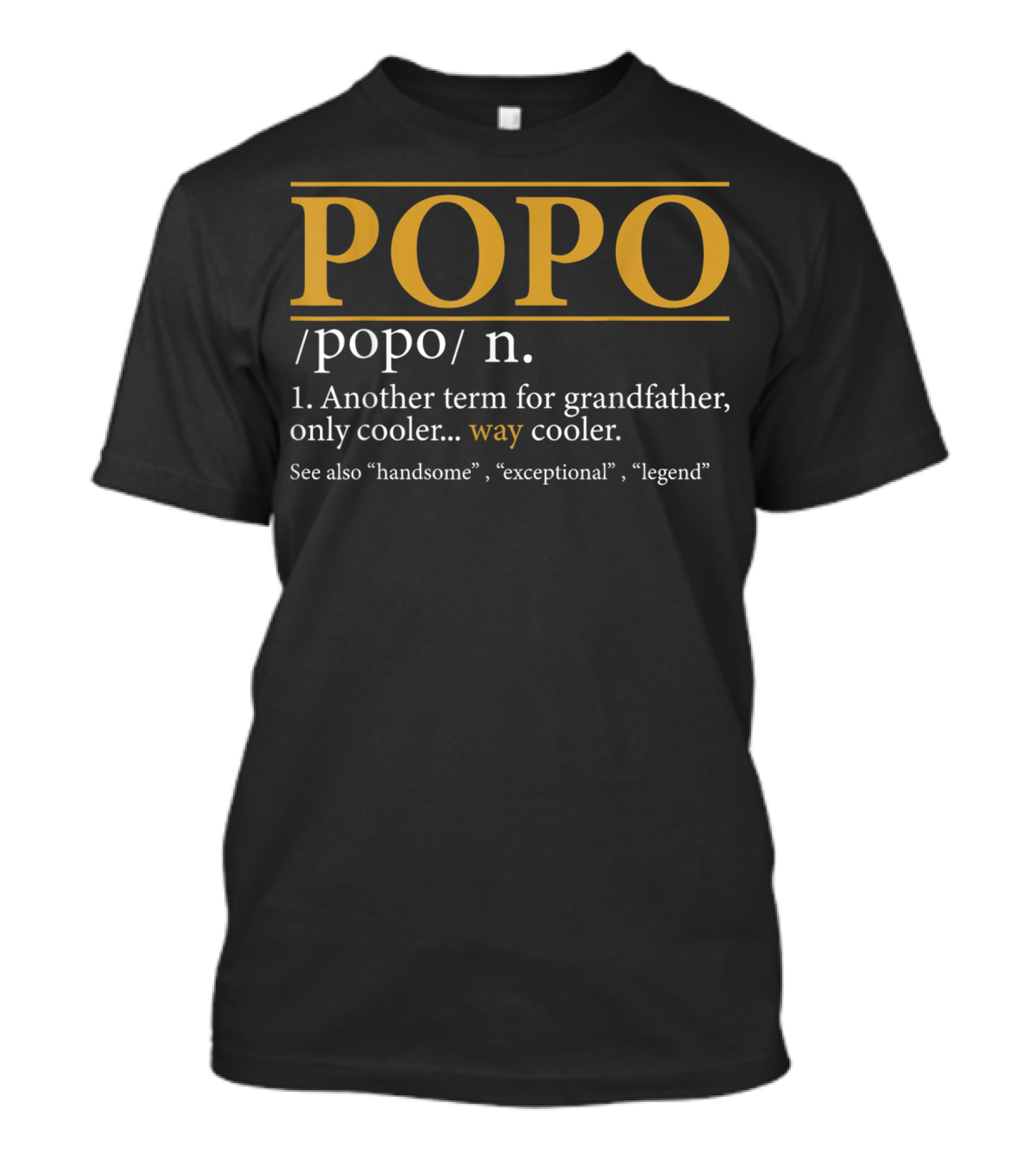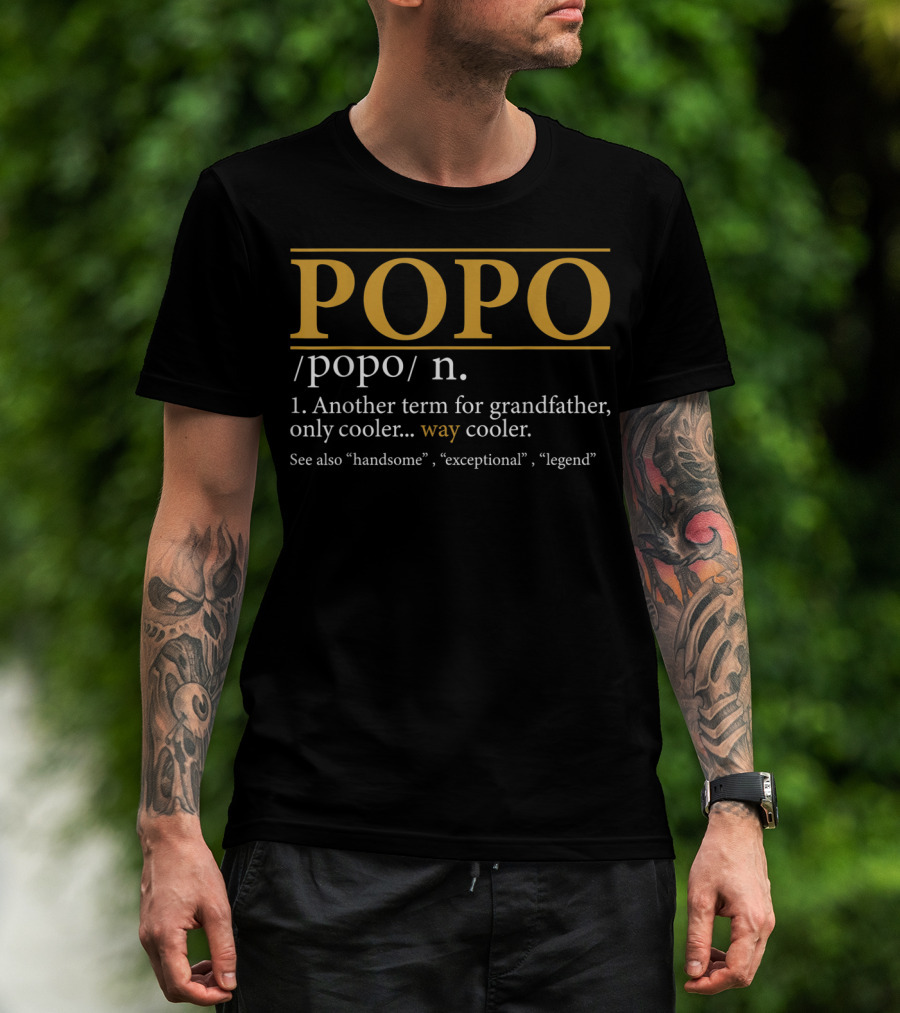 The Mens Funny POPO Definition Grandfather Cooler Exceptional Legend T-shirt is designed for everyday wear and a consistent fit. Fabric is pre-shrunk ring-spun cotton with durable stitching. See the size chart below for exact measurements.