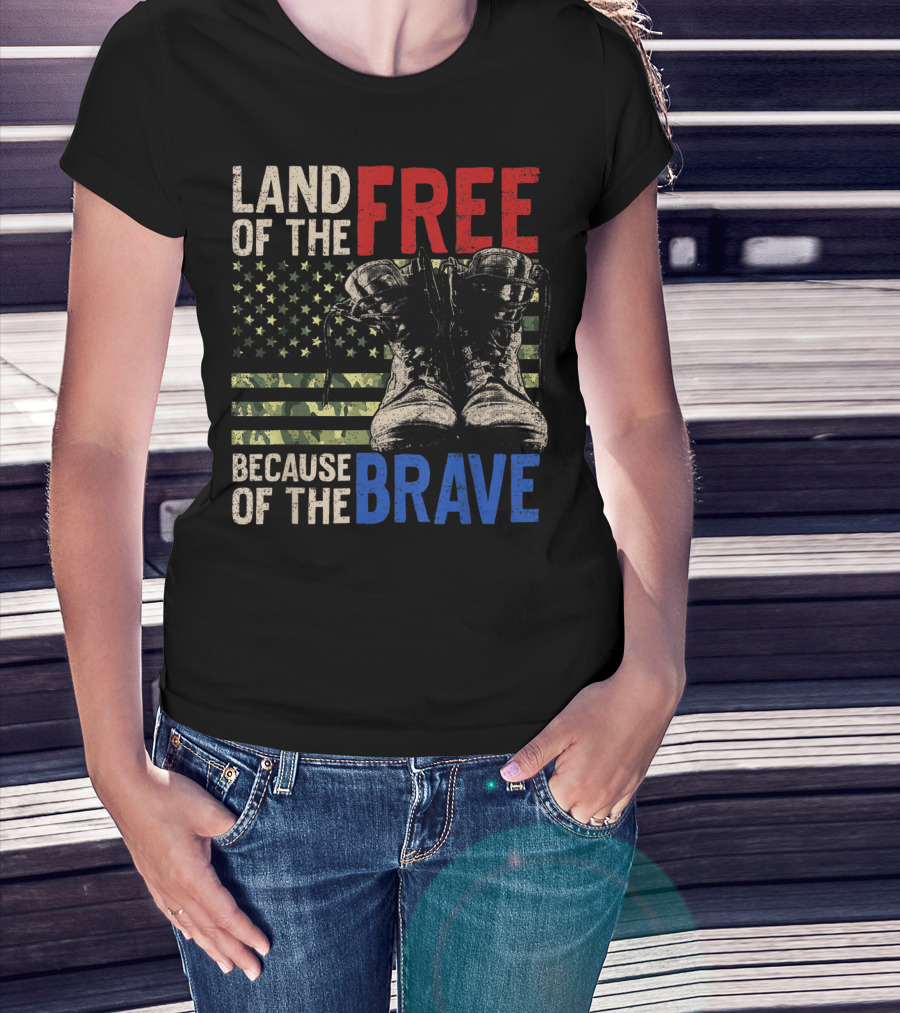 Land Of The Free Because Of The Brave American Flag And Military Boots T-Shirt