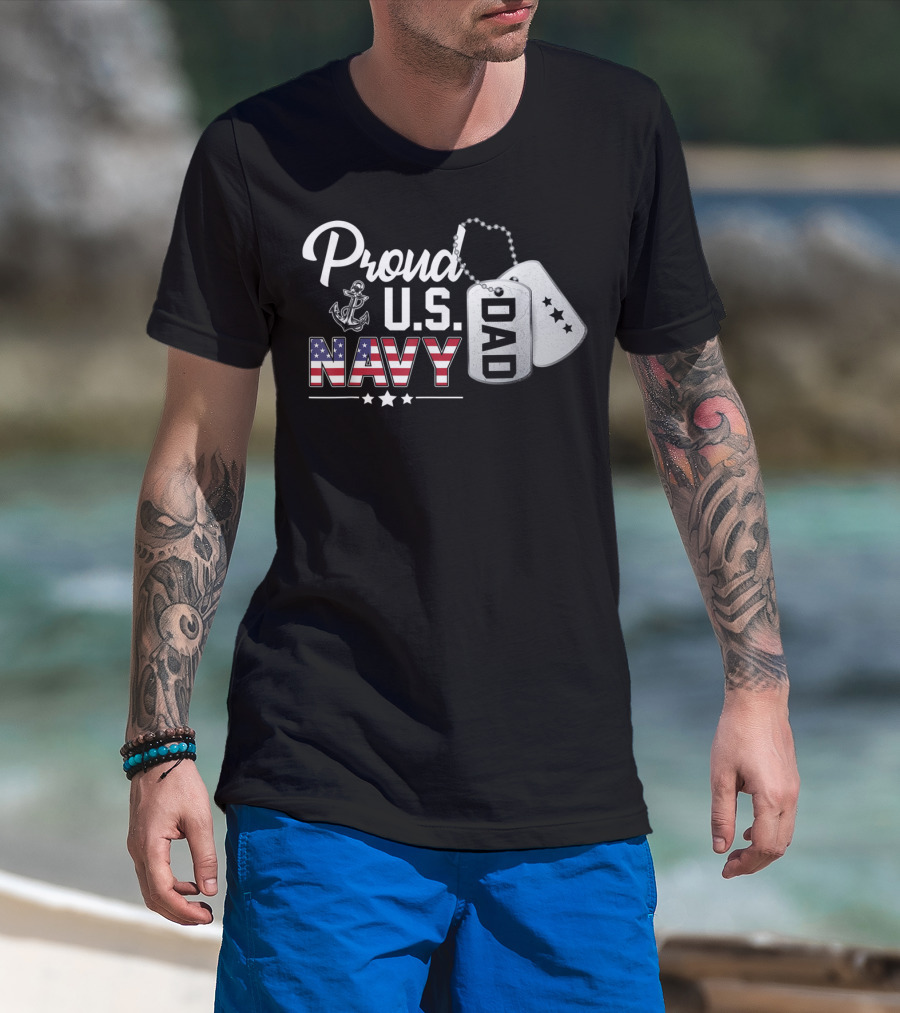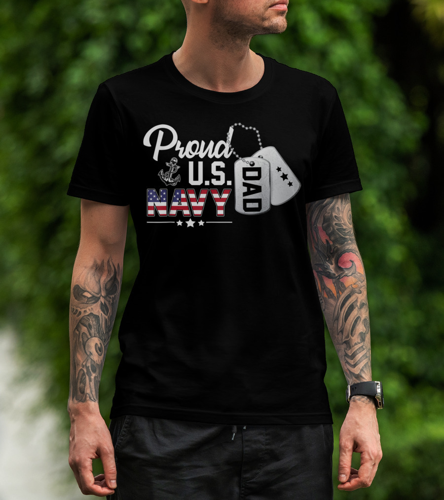 Proud U.S. Navy Dad Military Pride Dog Tags Anchor Stars T-Shirt