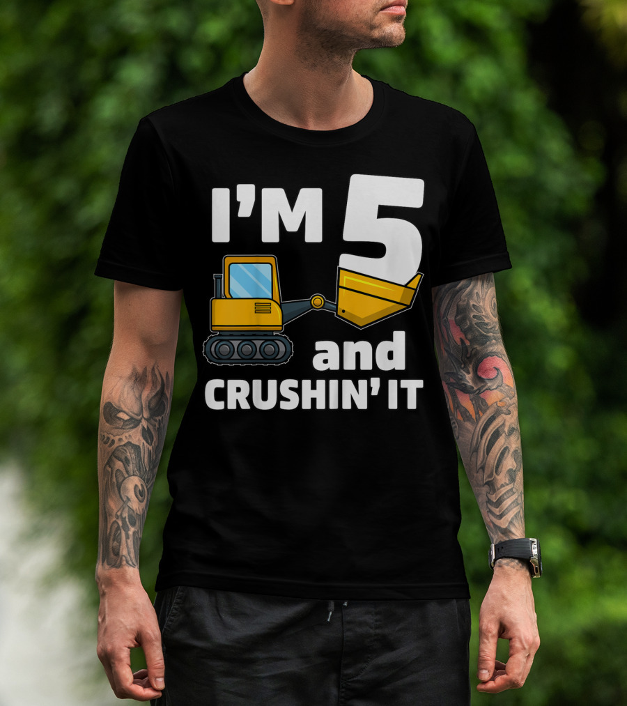 I'm 5 And Crushin' It Kids Construction Truck Birthday Boy T-Shirt