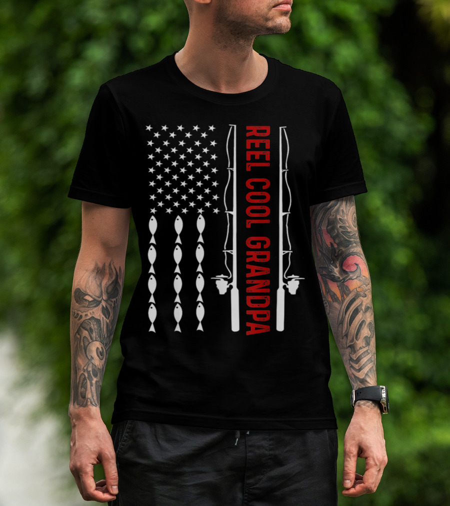 Reel Cool Grandpa Fishing Flag With Stars And Fish Rods T-Shirt