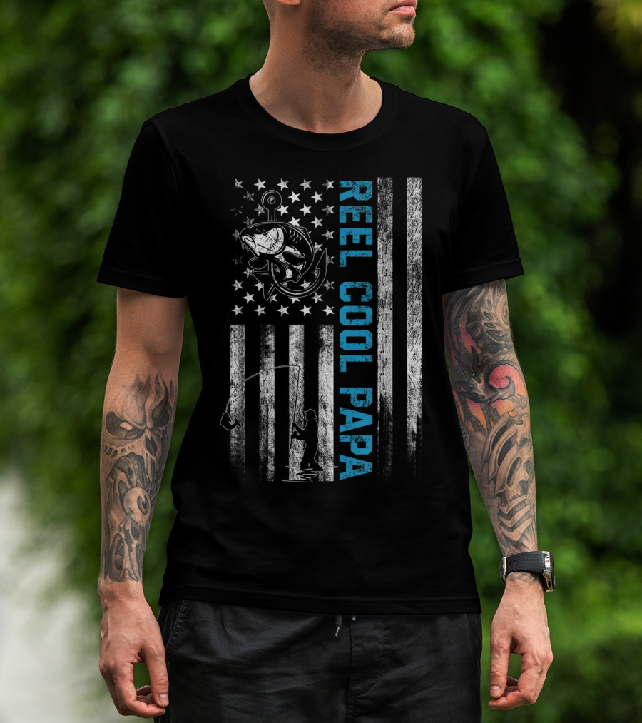 Reel Cool Papa American Flag Fishing Fish T-Shirt
