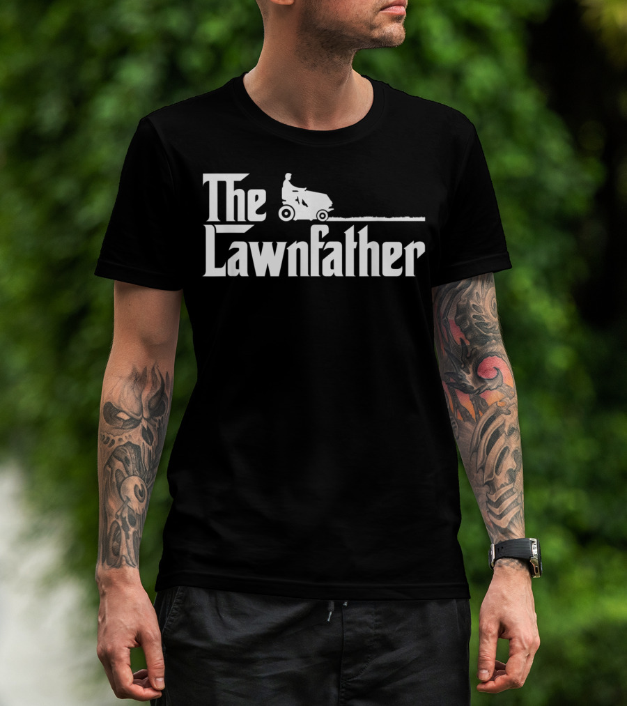 Mens The Lawnfather Funny Lawn Mowing Riding Mower Iconic Font T-Shirt