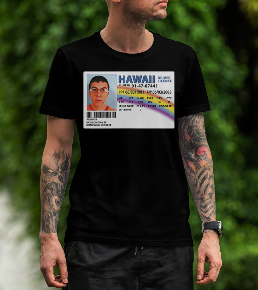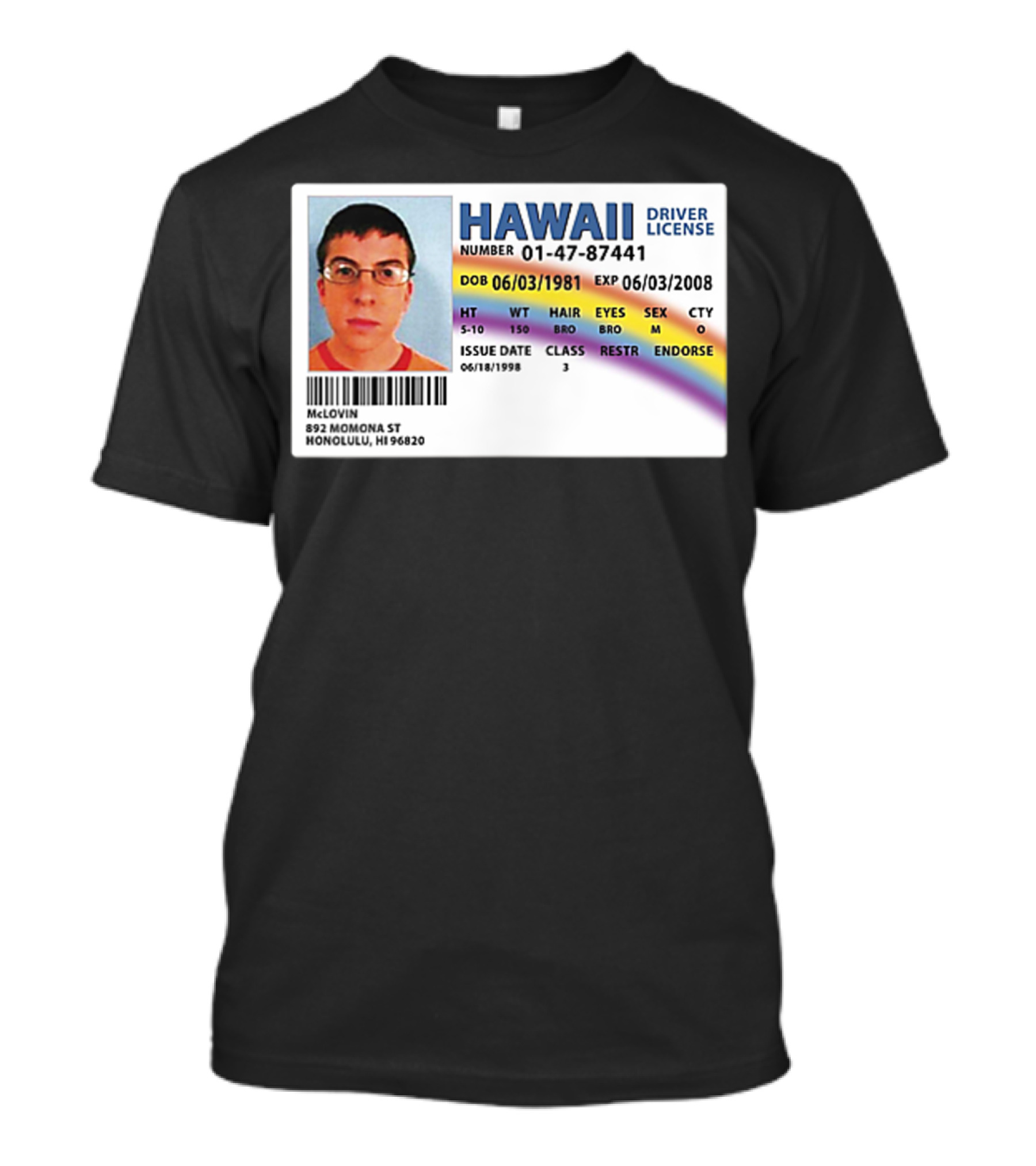 McLovin Hawaii Driver License Fake ID 06/03/1981 Superbad 892 Momona St Honolulu T-Shirt