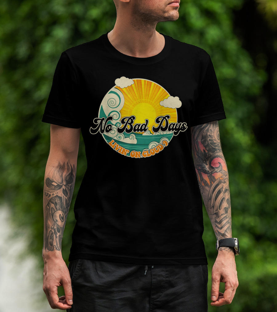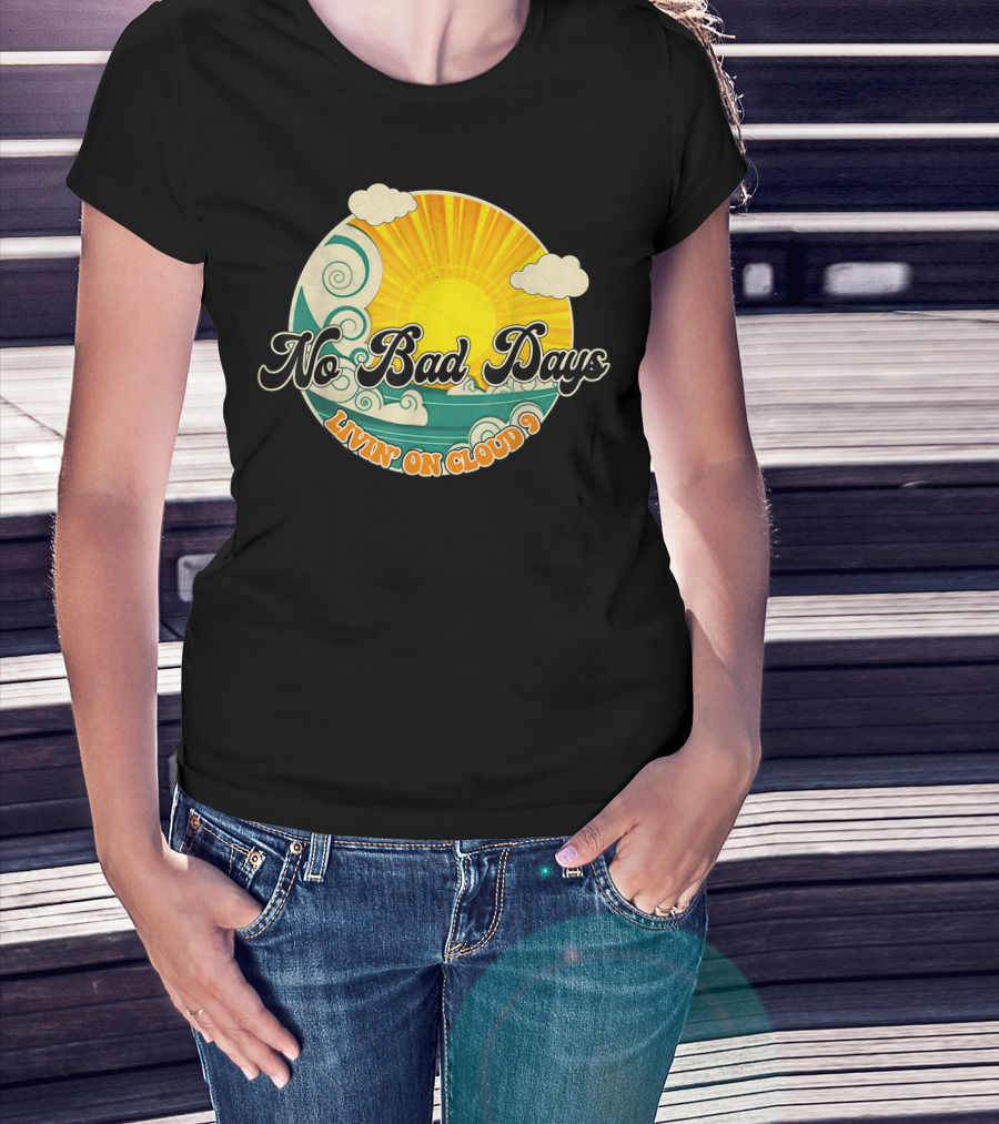 No Bad Days Livin On Cloud 9 Retro Sun And Waves T-Shirt