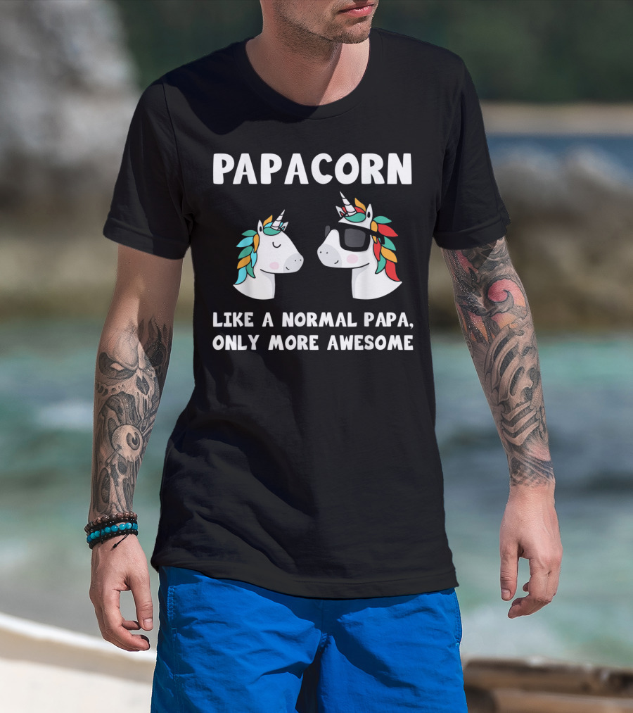 Papacorn Like A Normal Papa Only More Awesome Unicorn Dad Papa And Baby T-Shirt