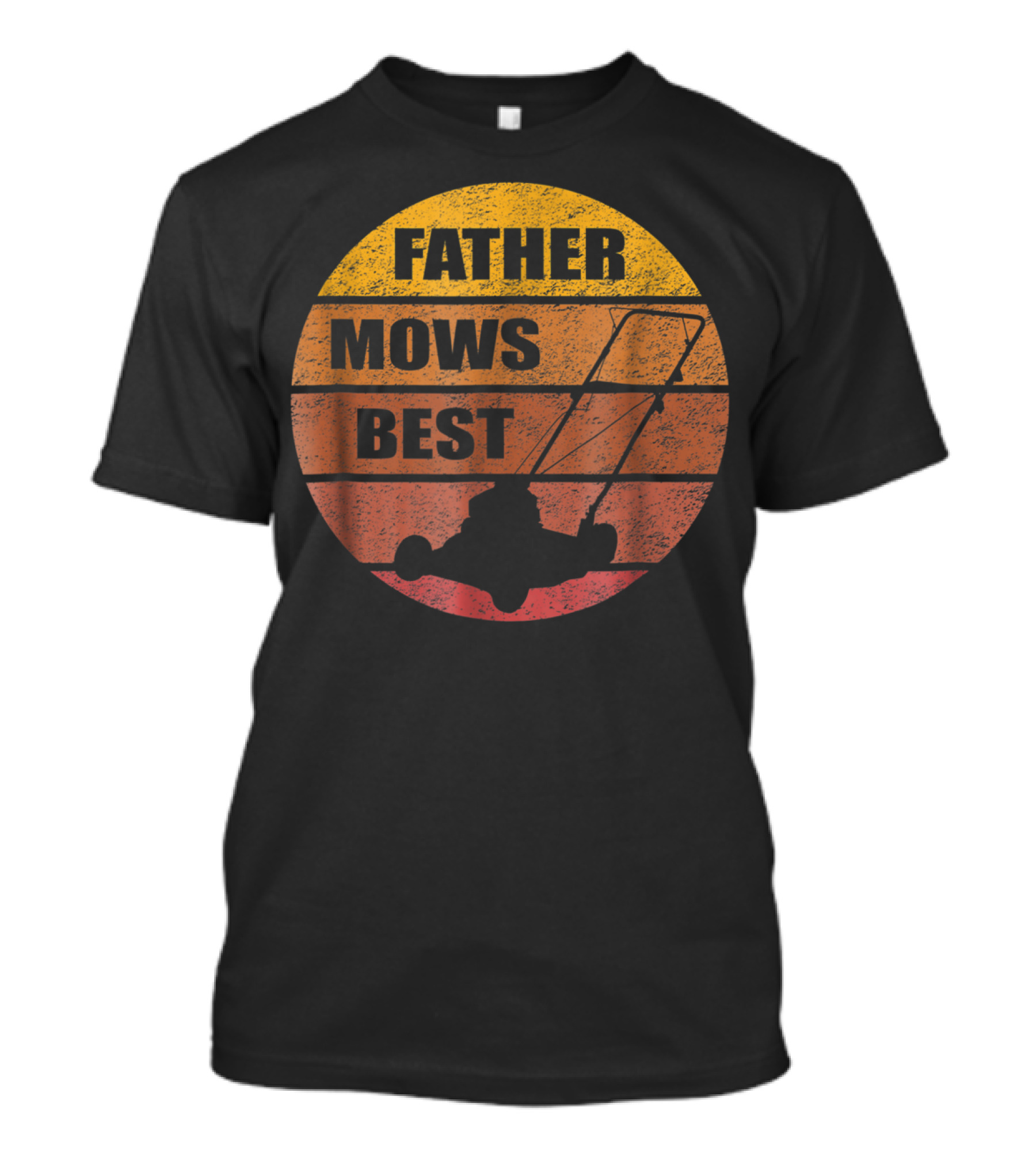 The Vintage Sunset Lawn Mower Father Mows Best Mens T-shirt is designed for everyday wear and a consistent fit. Fabric is pre-shrunk ring-spun cotton with durable stitching. See the size chart below for exact measurements.