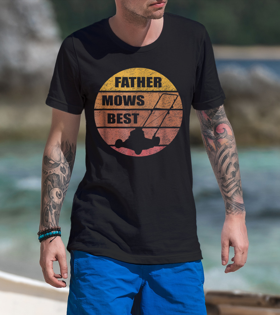 Vintage Sunset Lawn Mower Father Mows Best Mens T-Shirt