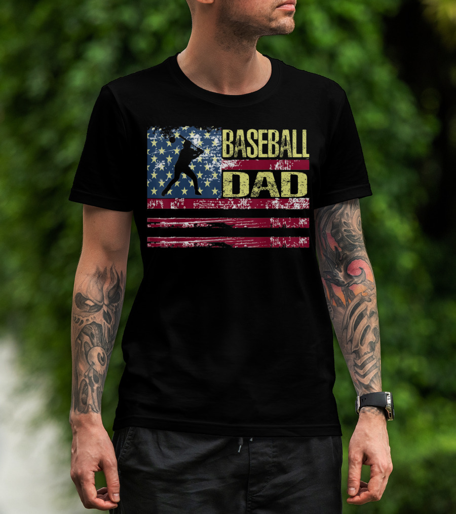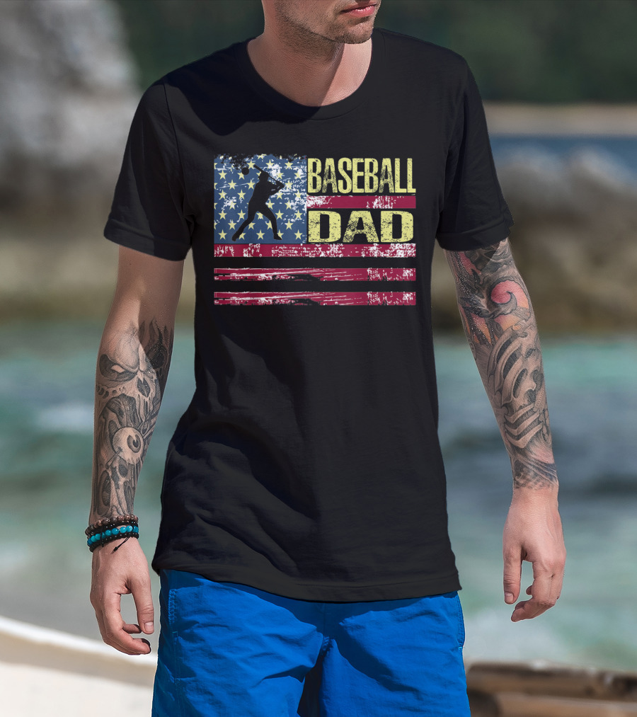 Vintage USA American Flag Baseball Dad Patriotic T-Shirt