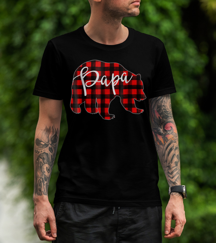 The Papa Bear Red Plaid Matching Family Mens T-shirt is designed for everyday wear and a consistent fit. Fabric is pre-shrunk ring-spun cotton with durable stitching. See the size chart below for exact measurements.