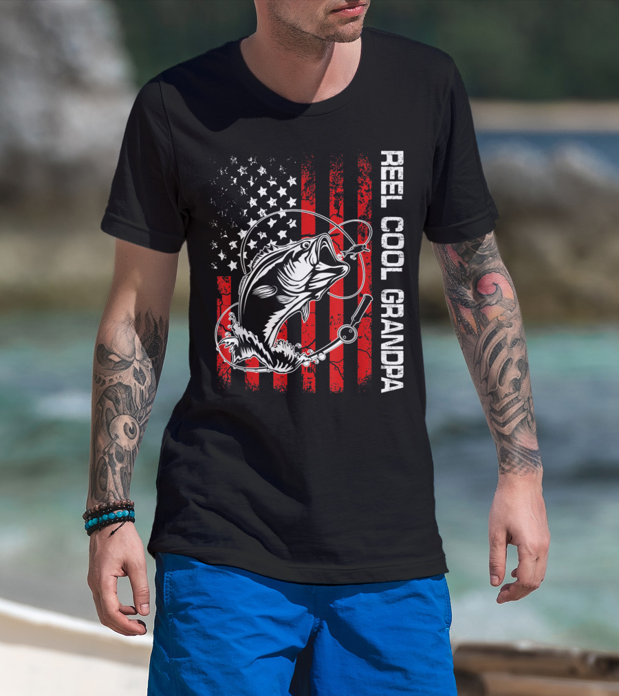 Reel Cool Grandpa American Flag Fishing Bass T-Shirt