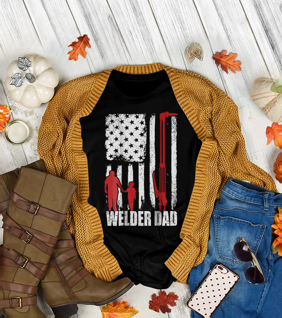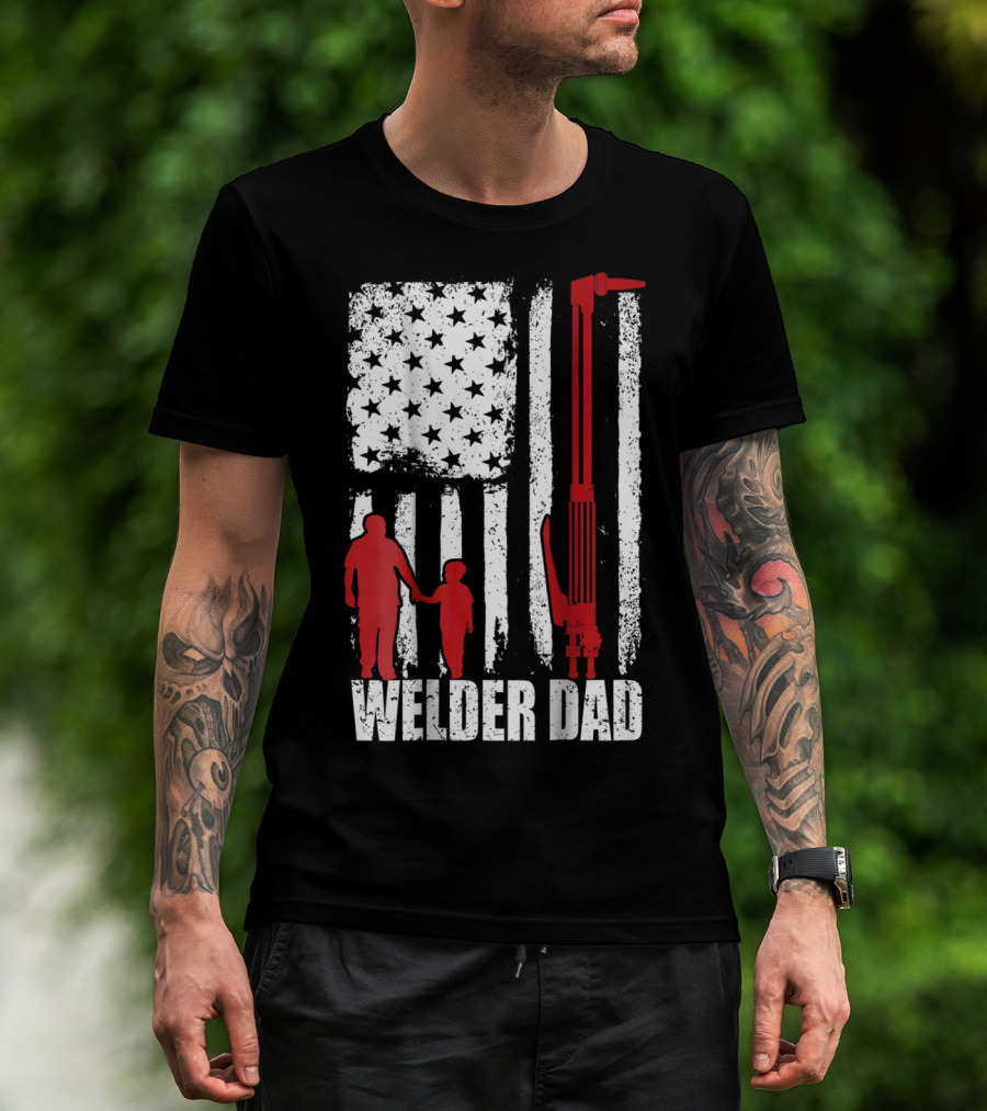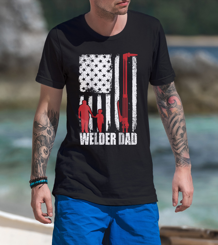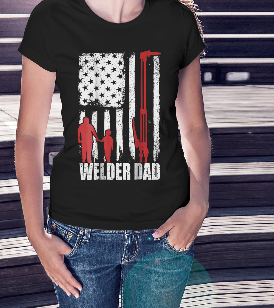 Welder Dad American Flag Grunge T-Shirt