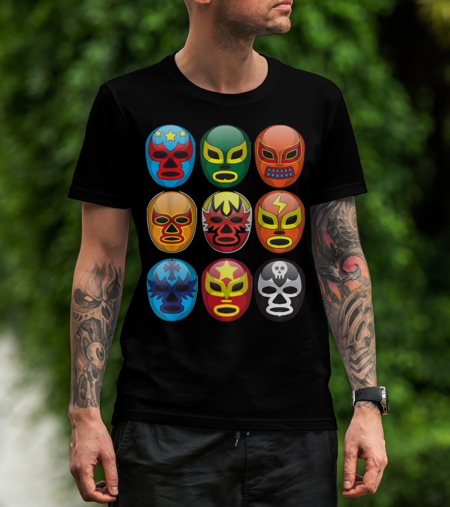 Lucha Libre Wrestler Masks Colorful Collection Cute Free Fighting T-Shirt