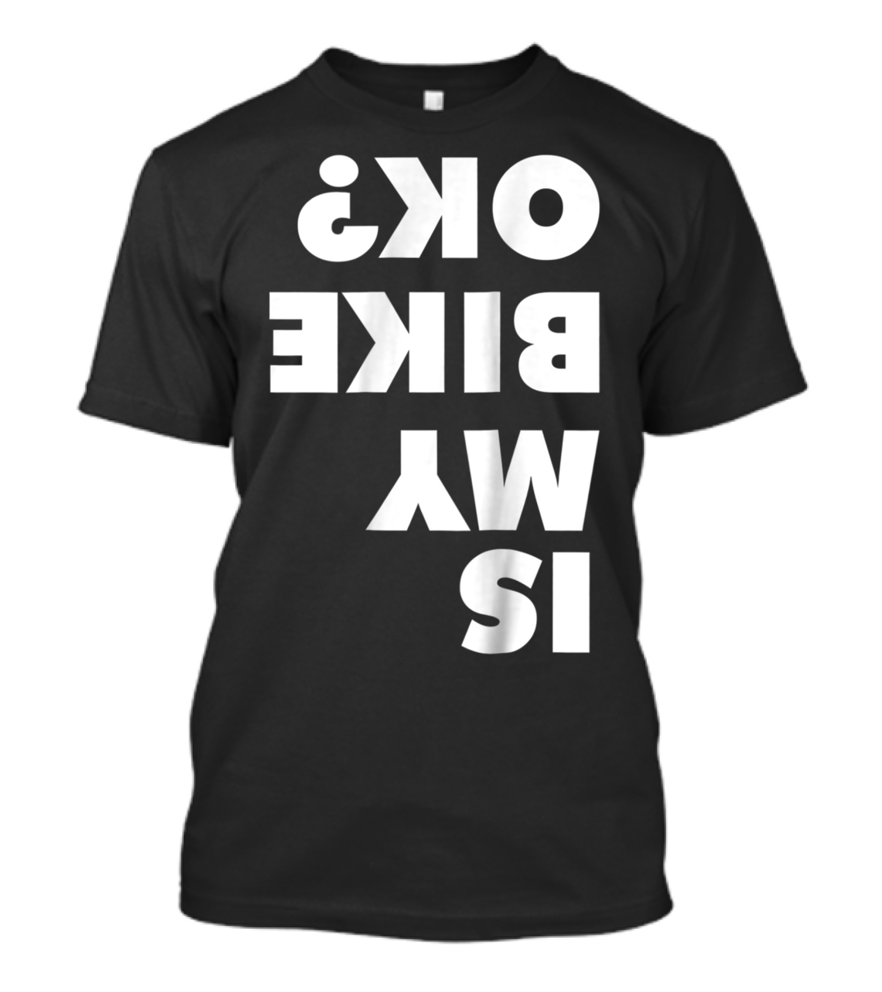 The Is My Bike OK Upside Down Text for Dirt Bike and Mountain Bike Enthusiasts T-shirt is designed for everyday wear and a consistent fit. Fabric is pre-shrunk ring-spun cotton with durable stitching. See the size chart below for exact measurements.