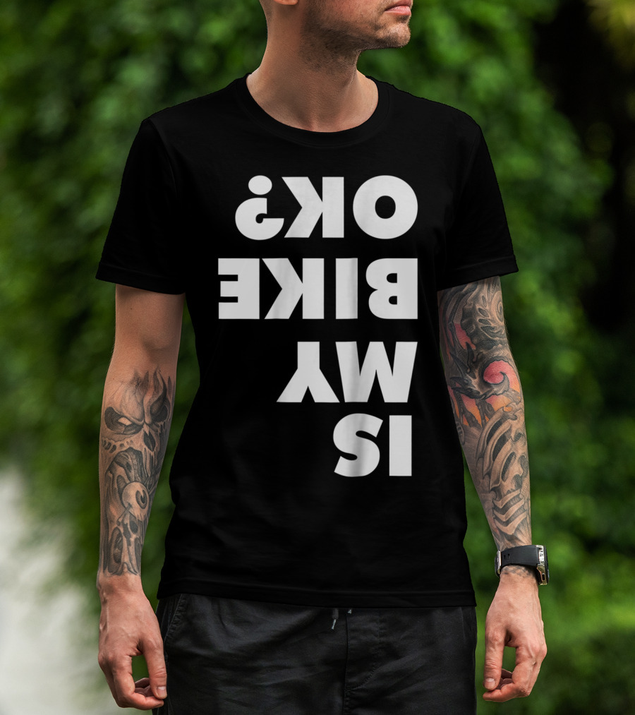 Is My Bike OK Upside Down Text For Dirt Bike And Mountain Bike Enthusiasts T-Shirt