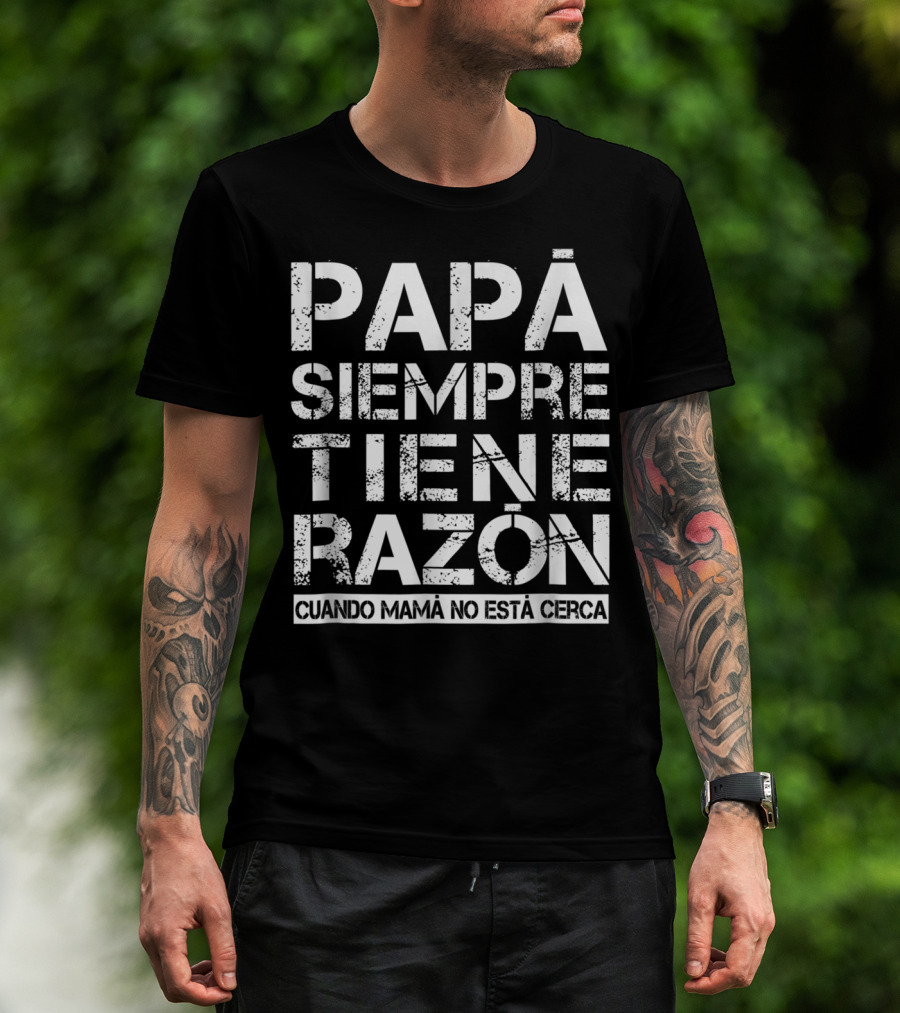 Mens Funny Spanish Language Dad Quote Papá Siempre Tiene Razón Cuando Mamá No Está Cerca T-Shirt