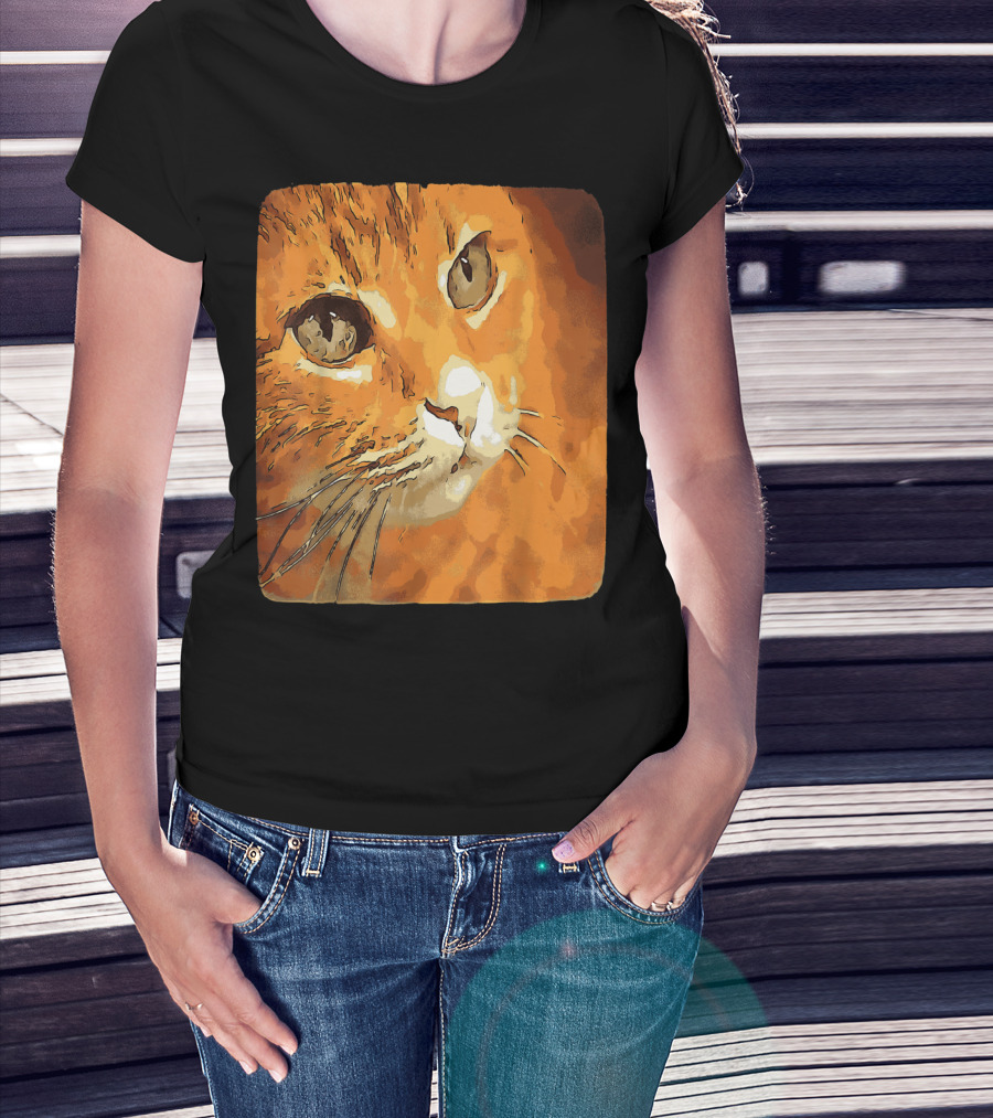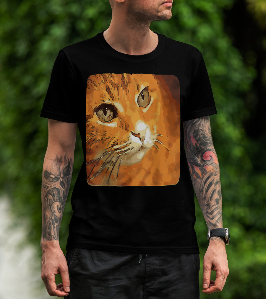 The Orange Tabby Cat Face T-shirt is designed for everyday wear and a consistent fit. Fabric is pre-shrunk ring-spun cotton with durable stitching. See the size chart below for exact measurements.